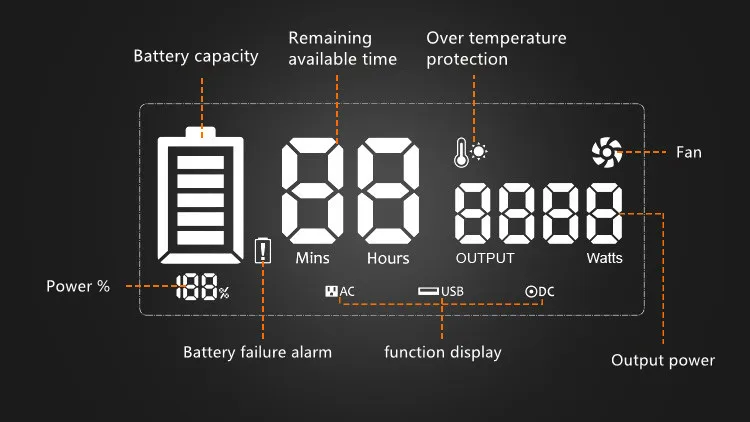 | यूएसबी आउटपुट | 4*TYPE-A: Blue2*QC18W मैक्स, 5V3A और 9V2A और 12V1.5 AQC3.0 2*TYPE-C: PD60WMax, 5V3A और 9V3A और 12V3A &15V3A और 20V3A PD3.0 |